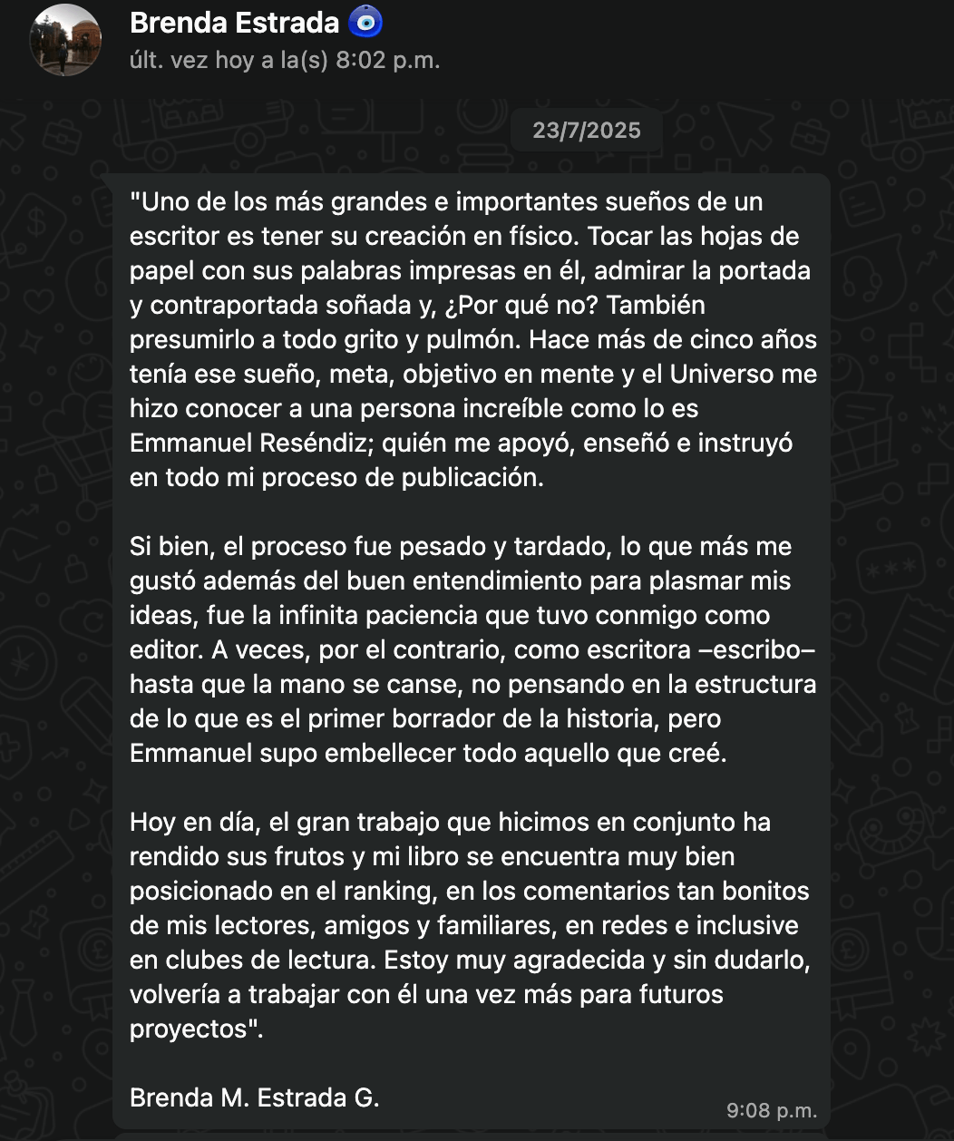 ¡Después de acompañar a más de 12 empresarios a convertirse en autores publicados para dejar su Legado, he pasado de todo! Desde autopublicar mi libro, hasta tener todo un sistema editorial que ayuda a empresarios que tienen una agenda ocupada... a publicar su Libro en diferentes plataformas a nivel mundial.